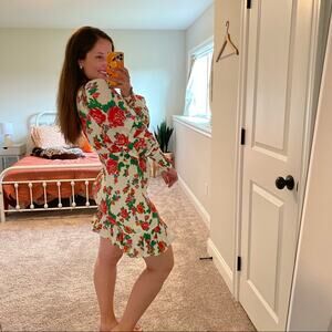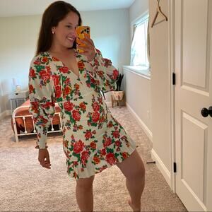I adore this super pretty and sexy flattering brand new with tags Rhode Resort white with red floral printed cotton smocked long sleeve mini dress
