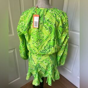NWT RHODE Azure Top & Willow Skirt in Lime Diamond Stitch Puff Sleeve Paisley