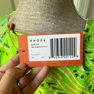 NWT RHODE Azure Top in Lime Diamond Stitch Puff Sleeve Size Large
