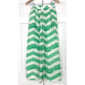 NWT RHODE Safia Wide Leg Pant in Green and White Watercolor Zig Zag - Size XS