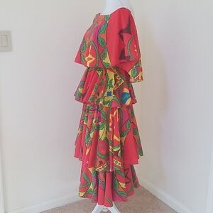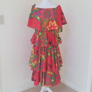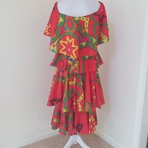 New! Rhode Size XS red combo tiered off the shoulder midi dress with side zipper. Absolutely gorgeous!