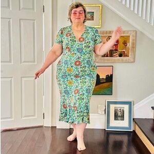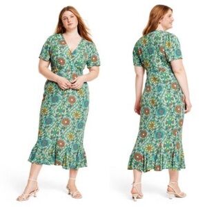 NWT RHODE x Target Zinnia Floral Print Short Sleeve Midi Dress Green/Red…