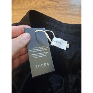 NWT RHUDE Men's XL Black Shorts Yellow Drawstrings Spell Out Lined Outdoors