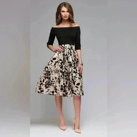 NWT RICCO BRUNO Women’s Midi Dress Black Beige Off Shoulders Size L