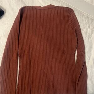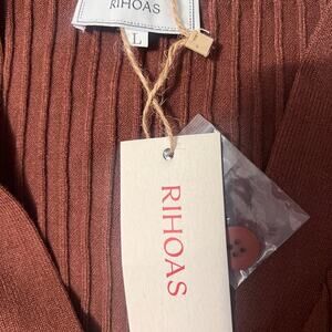 NWT RIHOAS The Solid V Neck Ribbed Knit Top/Sweater in Coffee - Large