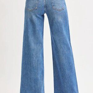 *These RISEN Full Size High Rise Wide Leg Jeans in Plus Size feature a sophisticated high-waisted design that creates a flattering silhouette while offering the comfort of premium stretch denim. The wide leg cut provides a modern, on-trend look that's both comfortable and stylish. Crafted from high-quality cotton blend denim with just the right amount of stretch, these jeans offer durability and all-day comfort. The classic medium blue wash makes them versatile for both casual and semi-dressy occasions. The traditional five-pocket styling and secure button-zip closure ensure both functionality and timeless appeal. Perfect for plus size customers seeking fashionable, well-fitting denim that doesn't compromise on style or comfort.