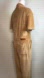 This Velour Jumpsuit is made by the Luxury Company RIVET.UTILITY. Made of all suede with short sleeves, pockets in front and back and zipper front with buttons. Color Camel. Size L(10-12)