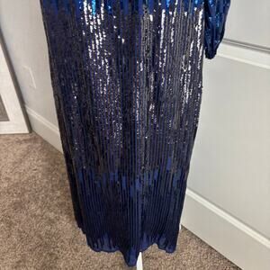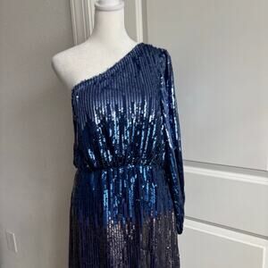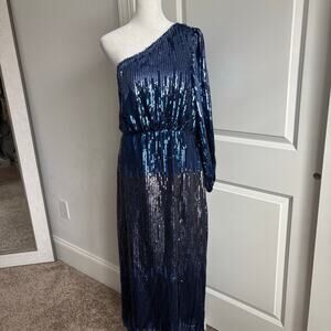 NWT RIXO Bradshaw One-sleeve Sequined Dégradé Chiffon Midi Dress Blue Formal 8