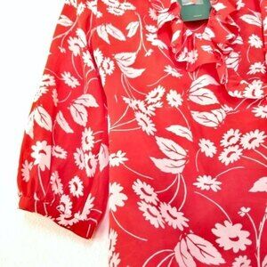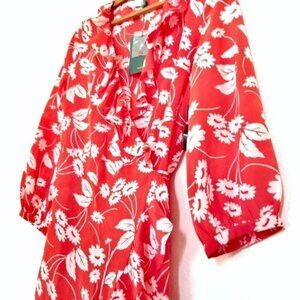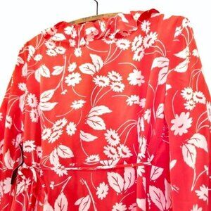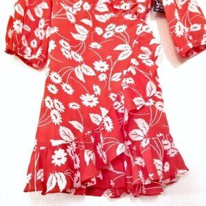 NWT RIXO London Abigail Ruffle Wrap Mini Dress Red Daisy Floral 100% Silk Medium