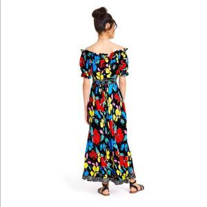 NWT RIXO Polka Dot Floral Off Shoulder Puff Sleeve Maxi Dress
