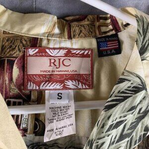 NWT RJC Mens Size Small Short Sleeve Hawaian Print Shirt Made in Hawaii Beige