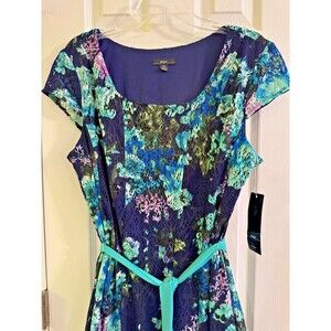 NWT R&K Black Floral Dress Sz 16W Knit Belt Fit Flare Aqua Party Wedding Whimsy