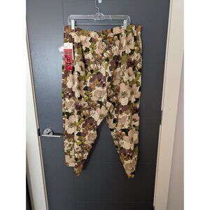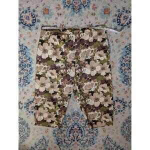 NWT R&K Original Earth Tone Cotton Blend Floral Print Pull On Cropped Pants - 24