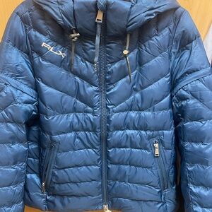New with tag no flaws RLX Ralph Lauren Women's Down Insulated 2 in 1 Jacket Best Indigo Blue. Sleeves can be removed to turn jacket into vest.