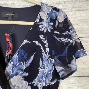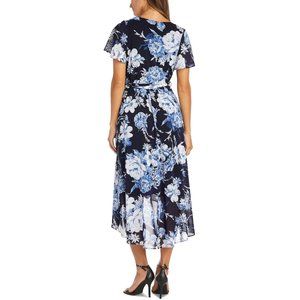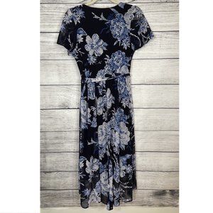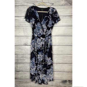 NWT R&M RICHARDS Navy Hi-Lo Belted Long Maxi Faux Wrap Dress Sz 6