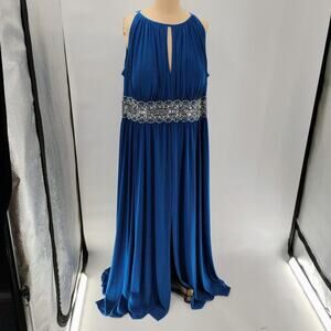 NWT R&M RICHARDS Womens Blue Embellished Keyhole Full-Length Evening Dress 22w