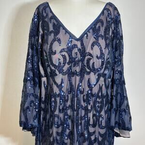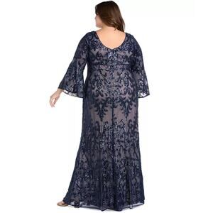 NWT R&M Richards Blue Sequin Embellished Bell-Sleeve Gown Womens Plus Size 20W