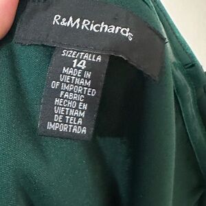 NWT R&M Richards Gown Women 14 Green Bow Front Column Maxi Dress Formal