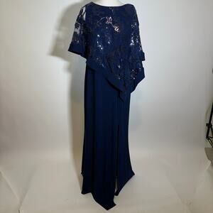 NWT R&M Richards Navy Blue 1 Piece Sequin Lace Poncho Sheath Dress