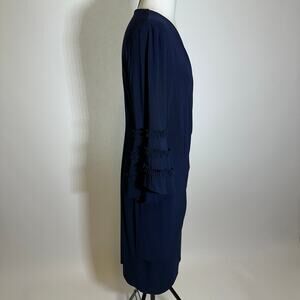 NWT R&M Richards Navy Blue Ruffle Sleeve Faux Wrap Cocktail Dress Womens Size 12