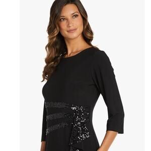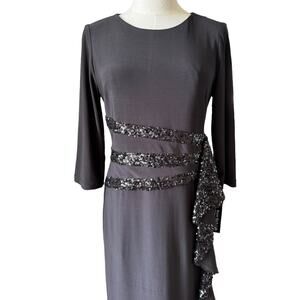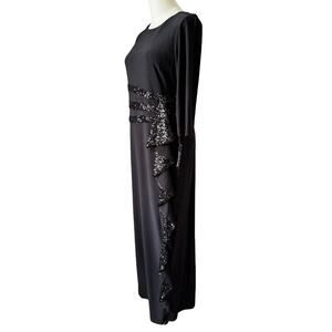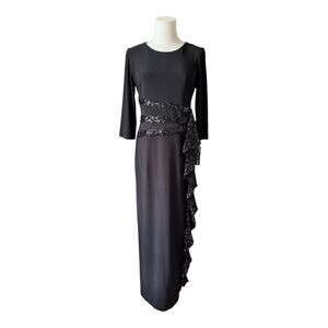 NWT R&M Richards Women's Long and Classic Sequins Cascade Dress Black size 6P
