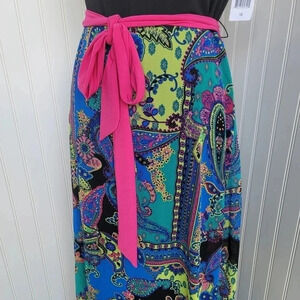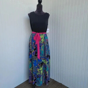 NWT RN Studio Ronni Nicole Black Multi Slevelesa Tie Design Long Maxi Dress 12