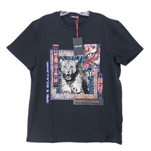 NWT ROBERTO CAVALLI Graphic Men's T-Shirt Beaded Animals Never Give Up LARGE