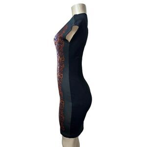 NWT ROBERTO CAVALLI Black Leopard Print Short Sleeve Mini Jersey Dress S…