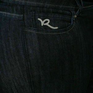 NEW NEVER WORN WITH TAGS =Cropped skinny jean features a button/zip fly closure, 5 pocket style and folded cuffs. Embroidered "R" adorn back patch pockets.