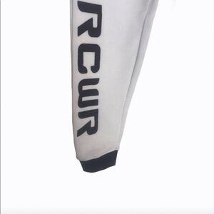 Rocawear joggers Fleece construction Rib-knit trim Logo graphics On-seam hip pockets Single welt pocket at back Elastic waistband with logo-printed tie accent 60% cotton, 40% polyester