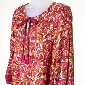 NWT Rock Flower Paper cranberry lightweight boho tie neck tunic