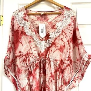 NWT ROCOCO SAND Ava Kaftan Lace Rosewood Tie-Dye maxi boho Dress women’s size XL