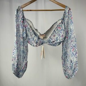 NWT ROCOCO SAND Lada Crop Top in Blue Size Large