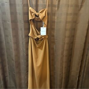 NWT RONNY KOBO Kosta Stretch-Crepe Midi Dress in Sepia Brown reg $488 small