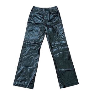 The ROTATE BIRGER CHRISTENSEN croc faux leather pants in size 8 feature a high rise and straight leg style, making them a versatile and stylish addition to any woman's wardrobe. Made from a blend of faux leather, polyester, and cotton, these black pants have a zip closure and are perfect for a dressy or casual look. With a solid pattern and regular size fit, these pants are suitable for various occasions and can easily elevate any outfit with their chic design.