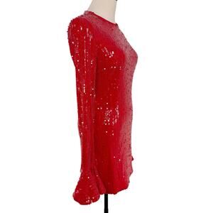 NWT ROTATE Birger Christensen Sequins Long Sleeve Mini Dress Red Cocktail Size 4