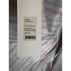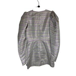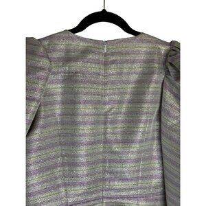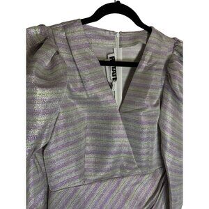 NWT, no flaws, size 38 (US 8). ROTATE Wrap Effect Metallic Mini Dress Purple. Crossover front detail. Hidden back zip closure. Metallic lurex fabric. Puff sleeves. Polyester blend.