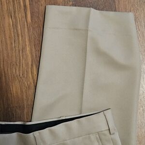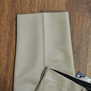 These NWT Roundtree & Yorke men's travel smart microfiber dress pants in size 40x29 are perfect for various occasions including travel, weddings, parties, casual outings, formal events, work, and business meetings. The pants feature a zip, button, and hook & eye closure, a mid-rise waist, straight leg style, and slash pockets. Made from comfortable polyester microfiber fabric, these dress pants are easy to care for and suitable for all seasons. The beige color and solid pattern offer a versatile and stylish look for the modern man on the go.Elevate your wardrobe with these stylish tan pants. Perfect for any occasion, offering both comfort and elegance.