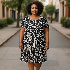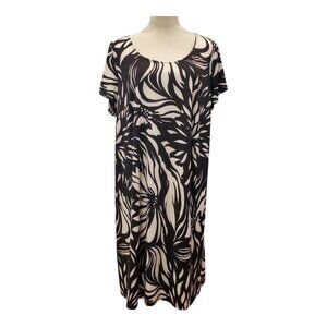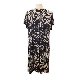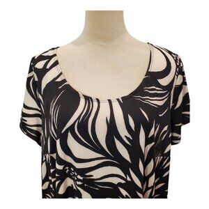 ROZ & ALI SZ 2X Black & White Floral Print Pull over Stretch Short-sleeve Dress