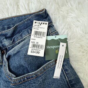 NWT RSQ Womens High Rise Midi Shorts Dark Wash Size 26