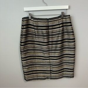NWT RSVP By Talbots Black Gold Stripe Tweed Pencil Skirt Women’s Size 10 Petite