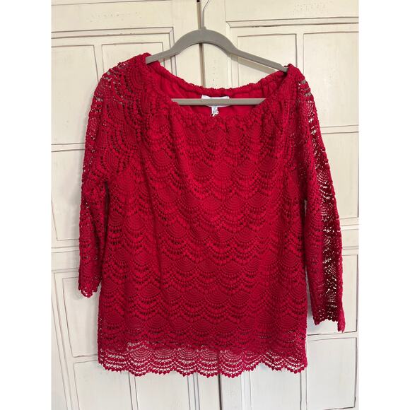 NWT RSVP by Talbots size large red lace top shirt blouse