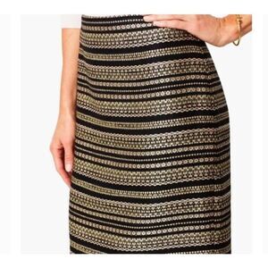 Tweed Brocade women's pencil skirt size 4p new with tags. Part of the RSVP Occassions collection. Celebrate in style with radiant stripes in black and metallic gold. This gorgeous gold skirt will elevate any occasion instantly. Invisible back zipper with hook and eye closure. Fully lined in teal. Dry clean. New with tags. NWT Size 4P