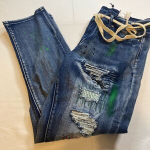 NWT RUE21 Men’s Paint Brush Denim Distressed Jeans - Size 33”