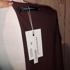 NWT Knee Length Cardigan. Rust, white, and orange block colors with Pockets.