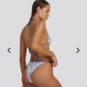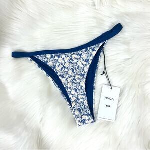 New with tags attached. Skimpy coverage high leg cut bikinis bottoms by RVCA. Blue Daisy floral pattern. Ribbed swim material. Size M/10. Bottoms only top not included. All sales final.
