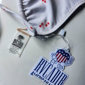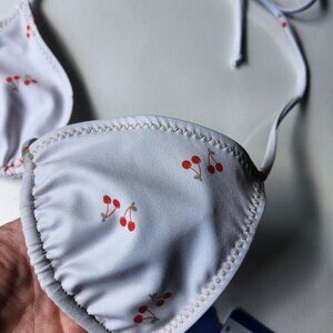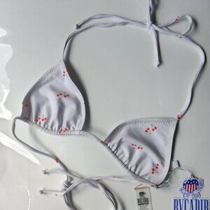 This women's bikini top from the RVCA Dipped In Blue Collection features a playful cherry print on premium swim fabric. Brand New with Tags. Retail $100.