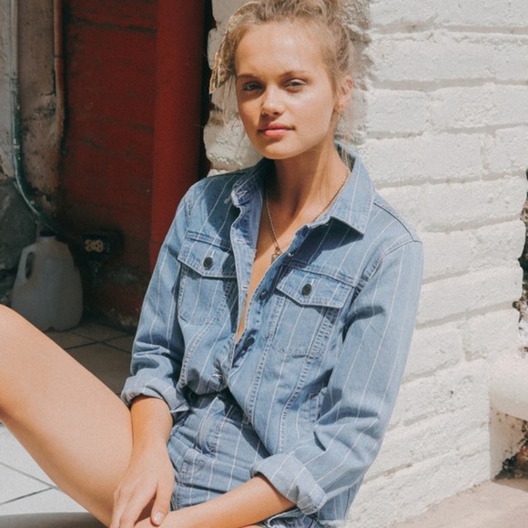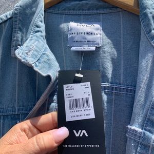 Cute pinstripe “Pause It” RVCA Jean Jacket. 100% cotton. Size XS. Useable pockets and buttons. Thick jean and very well made. Perfect for Spring, Summer, Fall!