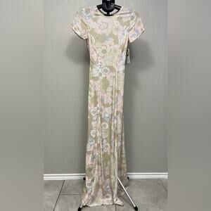 NWT RVCA Short Sleeve Pastel Floral Print Maxi Dress Open Back Size XS