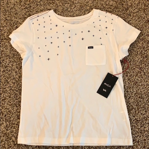 NWT RVCA Tee. Zero flaws. White with navy blue and red stitching. Size small